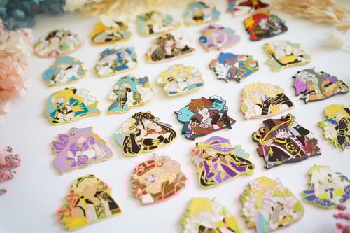 KEEP IN MIND COLORS VARY WITH MONITORS! These enamel pins are handmade so it may not be perfect 100%. Please write in the note section which characters you want for certain deals (Ex. Buy 2 get 1 free/Buy 5 get 3 free).