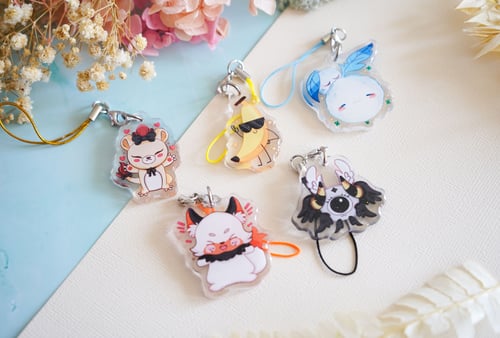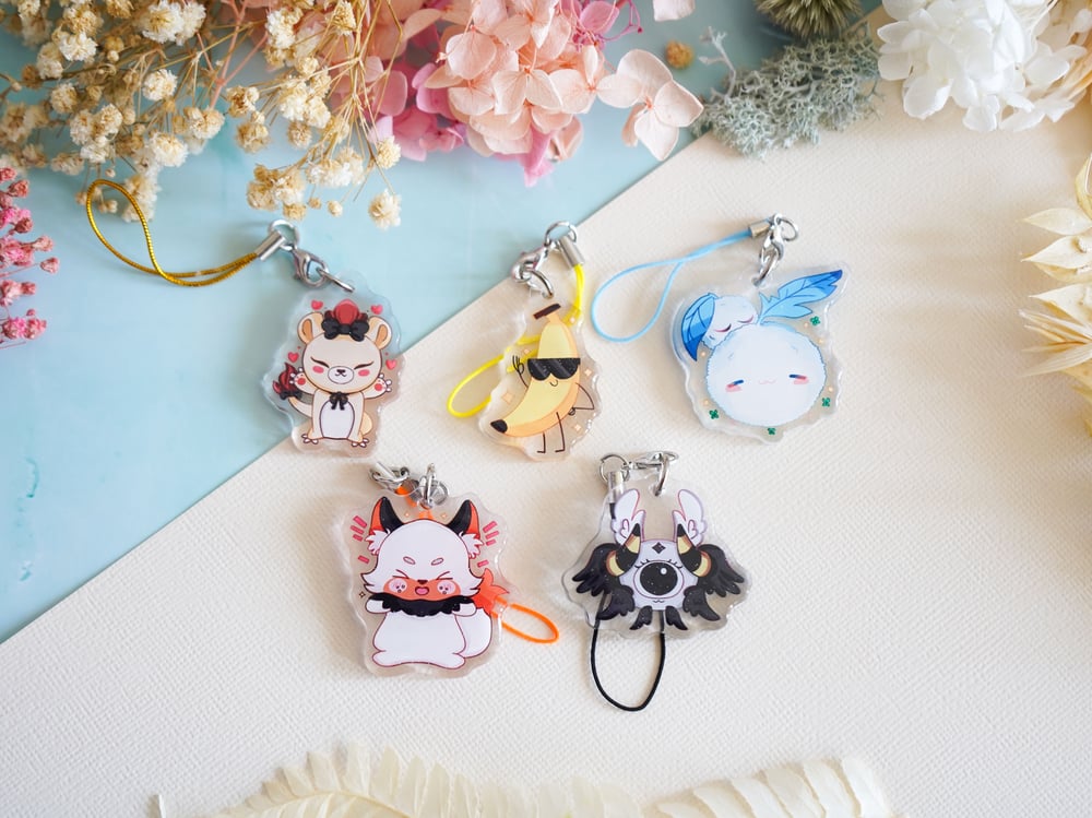 Cute acrylic phone charms based on Nijisanji EN Luxiem's Mascots that you can accessorize with your phone or bag! This is the phone charm variation of the phone grip.