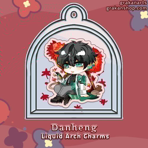 A unique liquid charm with an assortment of gingko leaves, maple leaves, and a sakura tree. The variations come with either with Jingyuan, Danheng, or March 7th.